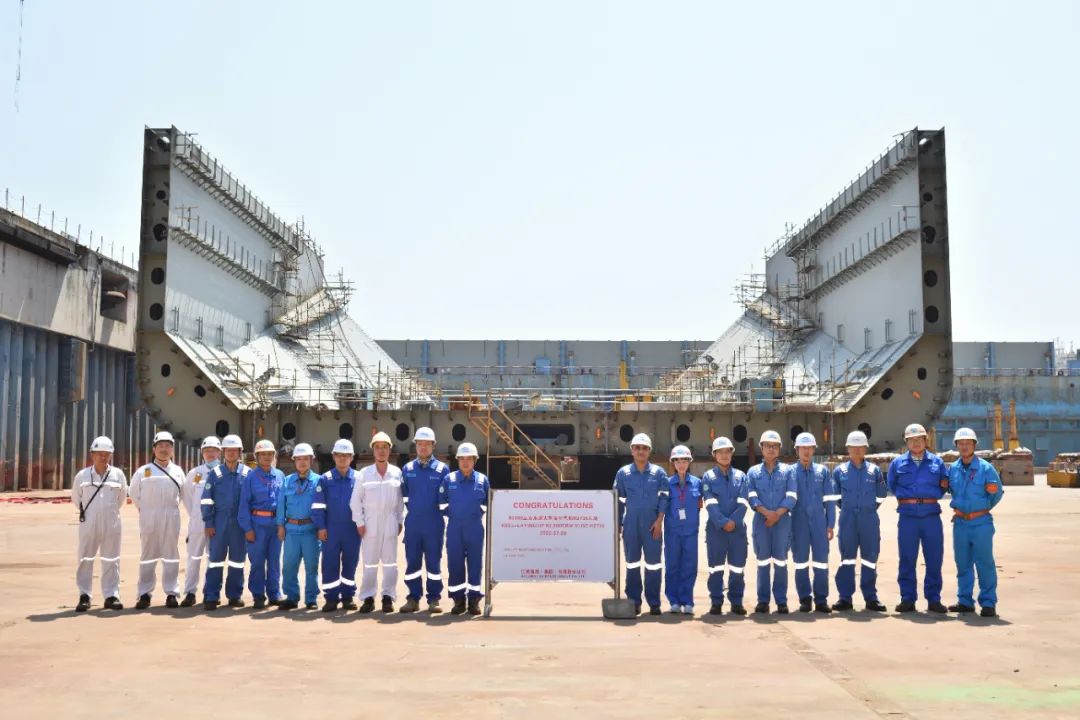 同日下午,江南造船为Petredec Holdings (Eastern) PTE Ltd (以下简称Petredec公司)建造的首艘93000立方米超大型液化气船(VLGC)H2735在3#坞举行入坞仪式,船东监造组、船级社及公司相关项目建造团队出席仪式。船东监造组代表Kumar、DNV船级社代表刘云、项目副总建造师涂晗在入坞节点证书上签字。