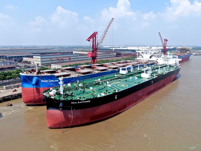 2日上午,新时代造船公司常务副总经理张玉永代表公司通过“云交付”仪式与船东希腊Seaworld公司签署55#156500吨油船交船文本;下午又与船东沙特BIHAR INTERNATIONAL COMPANY的代表签署11#110000吨油船交船文本;3日上午又与希腊船东Pantheon Tankers代表签署42#156500吨油船交船文本,三艘油船成功交付船东运营。