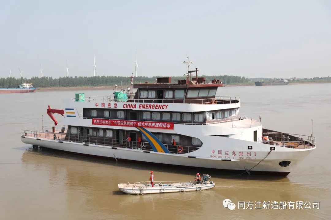 “中国应急荆州1”船是构建长江及其支流水域“陆海空天”一体化综合应急救援及应急指挥保障体系的重要装备,交付后主要用于长江湖北段防汛勘测勘察、抢险救援指挥、水下探测搜寻、水上消防救援、拖带救助、人员救助和应急医疗救护等任务,将成为处置水上应急突发事件、强化水上综合救援应急指挥能力和提升服务长江经济带发展的“利器”。