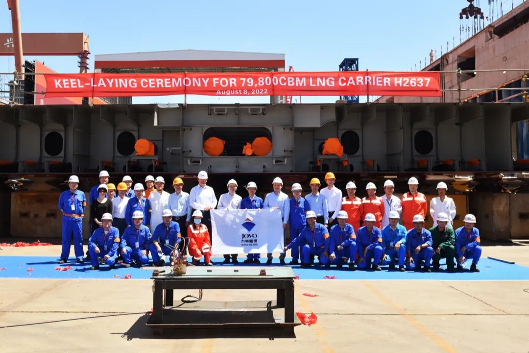 同日,江南造船为广东九丰能源集团建造的79800立方米液化天然气运输船(LNG)H2637入坞。广东九丰能源集团总部领导、船东驻厂监造代表、英国劳氏船级社、贝仕海事咨询等单位代表出席入坞及签字仪式,广东九丰能源集团高级副总裁蔡建斌先生宣布H2637船入坞并点火。