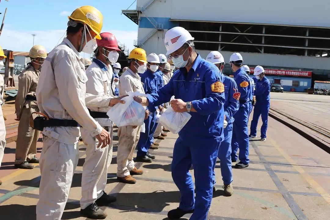 中船澄西通过供应清凉饮品、防暑用品、灵活安排生产时间及高温时段开放会议室、办公室空调等措施,保障高温下一线工人的身体健康和生产安全。