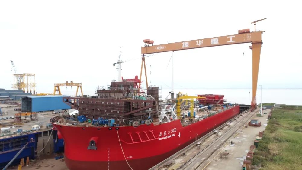 振华启东海工4000吨全回转起重船下水