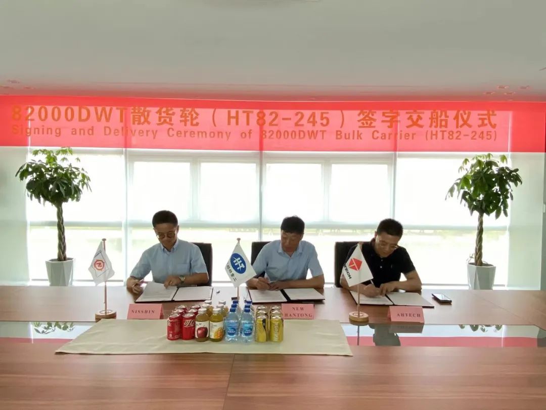 8月29日,韩通集团为日本Nisshin船东建造的首艘82000吨散货轮 “RICHWAY TRADER”成功签字交船。