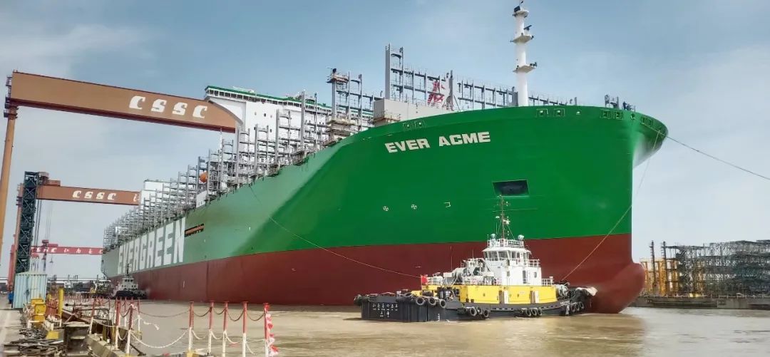 沪东中华造船24000TEU集装箱船出坞
