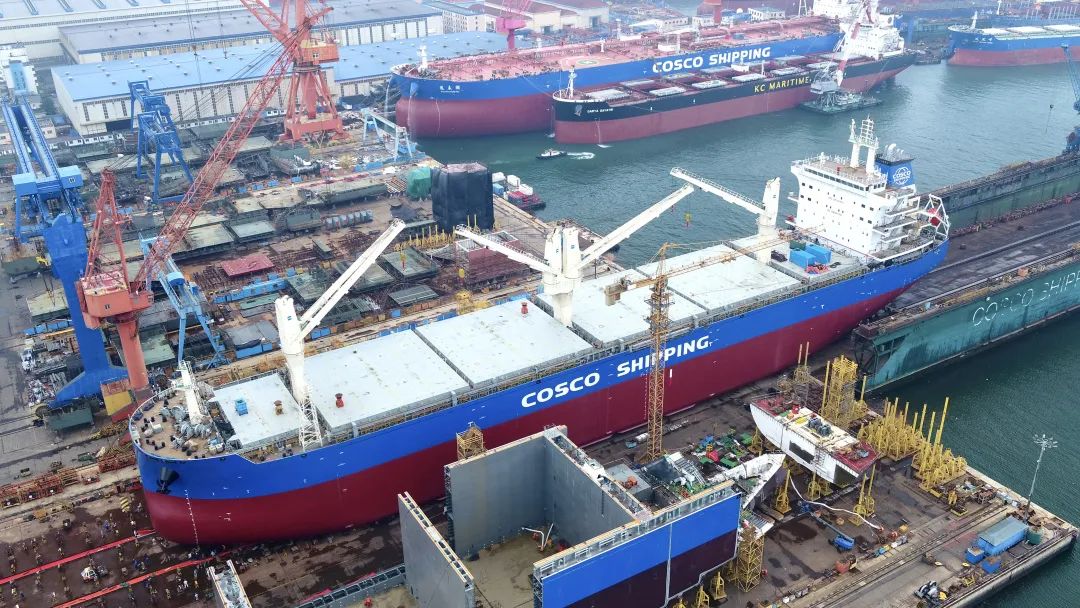 大连中远海运重工62000吨多用途纸浆船相继完成重要建造节点