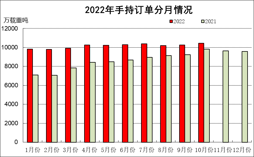 1~10月,全国造船完工3087万载重吨,同比下降3.6%。承接新船订单3740万载重吨,同比下降39.2%。10月底,手持船舶订单10444万载重吨,同比增长6.5%。