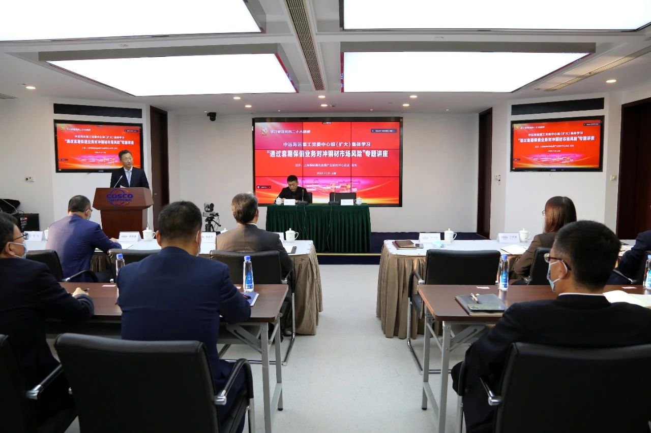 为深入学习宣传贯彻党的二十大精神,“加快建设现代化经济体系,着力提高全要素生产率,着力提升产业链供应链韧性和安全水平”,切实提升重工防范化解风险挑战、实现企业高质量发展的水平,根据中远海运重工党委学习宣传贯彻党的二十大精神《方案》相关工作安排,11月21日下午,中远海运重工以视频形式召开党委中心组(扩大)集体学习会,特邀上海钢联黑色金属产业研究中心张钊总监作《通过套期保值业务对冲钢材市场风险》专题讲座。公司董事长、党委书记梁岩峰主持会议并讲话。