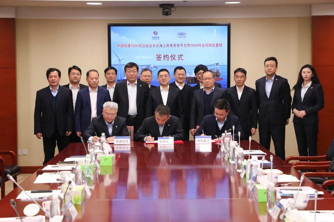 中国电建港航公司、中国电建租赁公司相关部门负责人,振华重工总工艺师、财务资金部、振华设计研究总院、营销总部和振华重装相关负责人参加签约仪式。