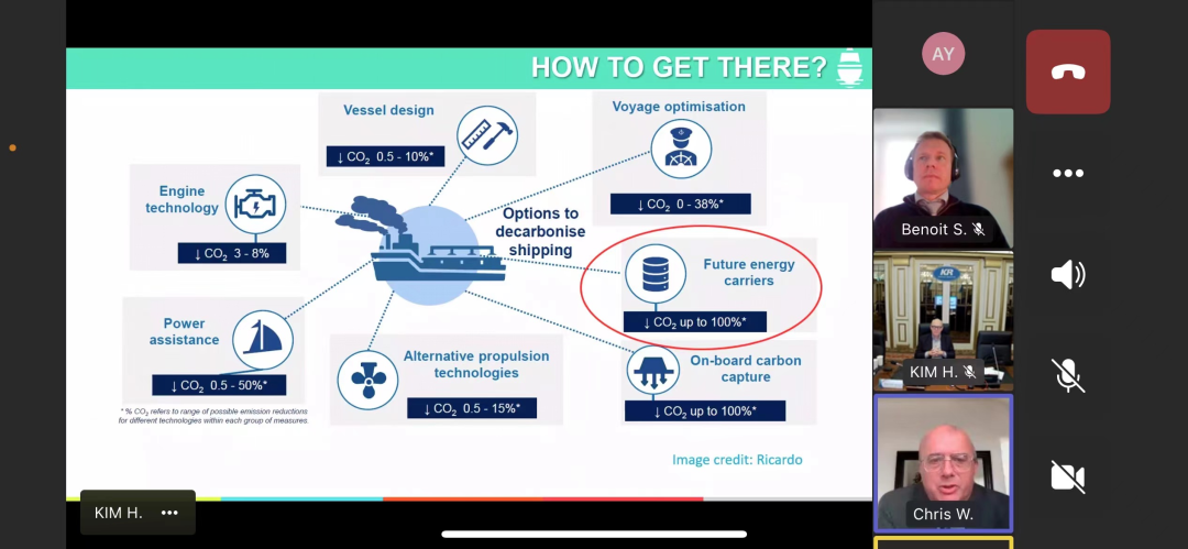 航运脱碳议题,就国际海事组织(IMO)的温室气体战略工作、航运业可持续发展、航运业脱碳技术的安全性等问题进行讨论。国际干货船船东协会(INTERCARGO)技术委员会副主席Dimitris Monioudis指出,航运业推进碳减排需要船东、造船、港口、配套等各方面的通力合作,尤其是在应用新燃料、新动力系统等减排技术方面,船东需要倾听更多来自船厂、设备方面的建议。国际航运公会(ICS)技术专家Chris Waddington表示,液氨、液氢等新绿色能源在船舶上的应用,将进一步催生绿色能源贸易、运输和港口设施(储运)建设,船东和航运业未来不仅要明确自身船队的能源定位,还要进一步参与绿色能源供应链的建设。国际船级社协会(IACS)安全脱碳小组主席Carlo Aiachini表示,液氨、液氢、电池和碳捕捉是目前安全性相对较高的碳减排技术方案,IACS将继续在这些领域向IMO安全委员会提供技术提案,支持IMO制定相应的碳减排行为准则,此外,目前IACS也已开始收集核能在航运上应用的技术建议。
