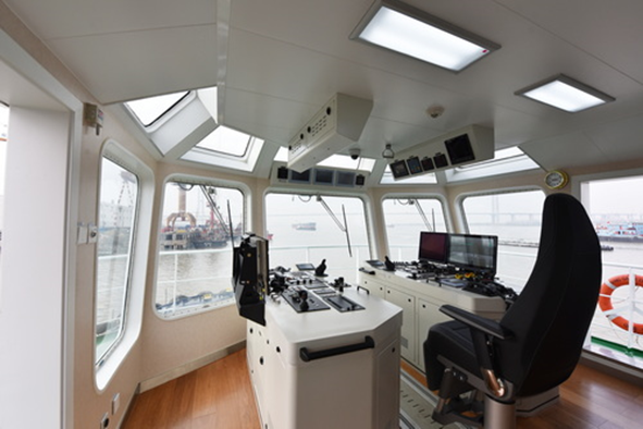 该船同时取得了中国船级社AUT-0(无人机舱)、Hybrid(混合动力)、i-Ship(N,M,E,I)(智能船舶:智能机舱、智能航行、智能能效、智能集成平台)6个入级符号和附加标志。全船共有12568个传感器,智能系统融合展示的有4216个数据,6套人工智能建模系统,以及多个个性化需求智能装置。智能航行可以实时分析航海通信设备的信号,对船舶碰撞危险度(CRI)进行评估。对机舱内各设备的运行状态和健康状况进行分析和评估,为船舶操作和检修提供辅助决策。通过对主机、锂电池的能耗进行实时监测和能耗分析,为最佳航行方案提供能耗数据支持。采集智能航行、智能机舱、智能能效管理系统的数据,形成船上数据与应用的统一集成平台,实现船端和岸基对船舶的全面监控与智能化管理。