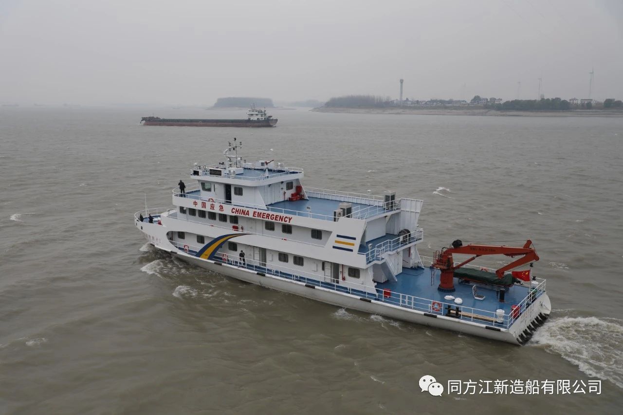 12月16日,由同方江新为湖北荆州市应急管理局建造的、国家应急管理系统首艘长江水上综合应急救援指挥船——“中国应急荆州1”号,从我公司舾装码头解缆启航,前往目的地交付。