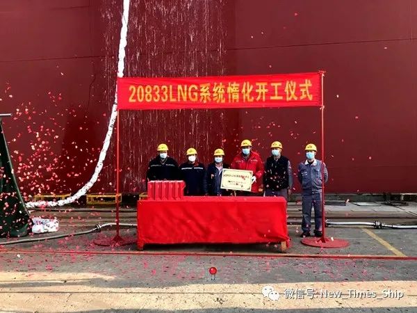 12月15日,新时代造船项目七组、机装部、电装部、甲装部、居装部等相关部门负责人一起出席了20833#船惰化开工仪式,搭载部部长张荣转动氮气加注阀门,该船LNG系统惰化工作正式启动。从11月5日下水至今,仅仅40天,项目七组带领团队又创造了公司双燃料船LNG系统安装的新纪录!