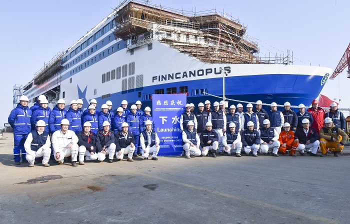 12月30日,威海金陵为意大利Grimaldi集团旗下Finnlines Plc公司建造的第二艘豪华高端客滚船下水。