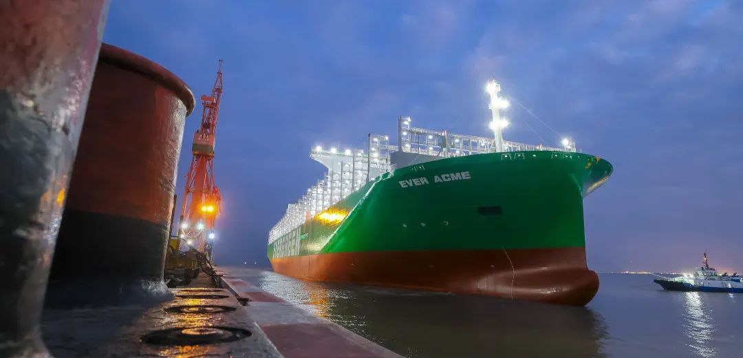 12月29日,随着24000TEU超大型集裝箱船“EVER ACME”(长崇号)签字交付成人电影 旗下沪东中华提前完成2022年交船目标任务。