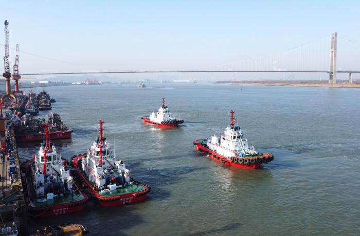2023年1月16日,江苏省镇江船厂(集团)有限公司同日完成6大生产节点,其中交付自主设计并建造的5艘多功能全回转拖船,创企业单日交船数量新纪录。