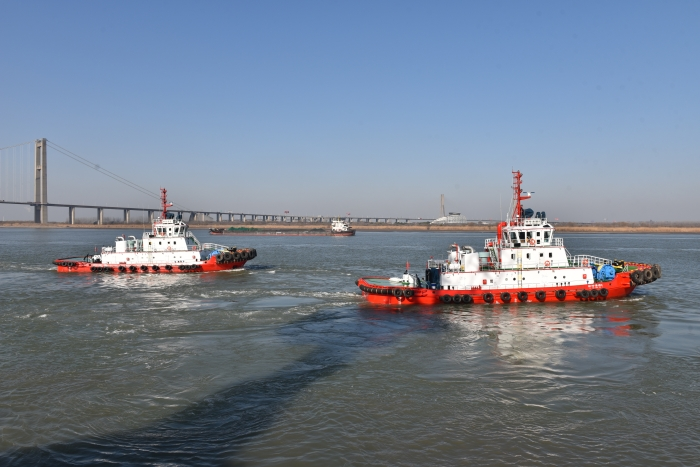 镇江船厂为连云港徐圩港口投资集团有限公司自主设计建造的4艘消拖两用全回转拖船——“徐圩港消3”、“徐圩港消4”、“徐圩港消7”、“徐圩港消8”,为江苏博航船务有限公司设计建造的全回转拖船——“博强拖8”完工交付,顺利启航。为唐山港曹妃甸拖船有限公司建造的4780kW全回转拖船——“曹港31”顺利吊装下水。