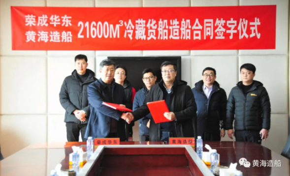 2月2日,黄海造船有限公司与荣成华东渔业有限公司签订一艘21600m³冷藏货船造船合同,该船是目前我国最大的节能型冷藏货船,是双方继此前建造交付的143米渔业运输船“华祥8”轮后的再次合作。