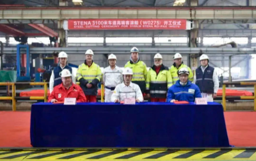 2月6日,威海金陵举行为stena 公司建造的第12艘E-Flexer高端客滚船W0275开工仪式。船东驻厂经理Rikard Olsson先生, 挪威船级社驻厂经理Alexey Rybinskiy,公司总经理郑和辉、财务总监魏恩鹏、总工程师欧书博、生产管理部经理王海滨及项目组成员参加。