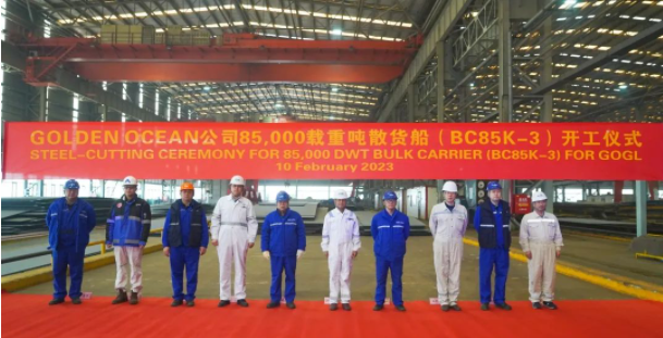 2月10日,大船天津为GOLDEN OCEAN公司建造的8.5万吨散货船3号船开工。