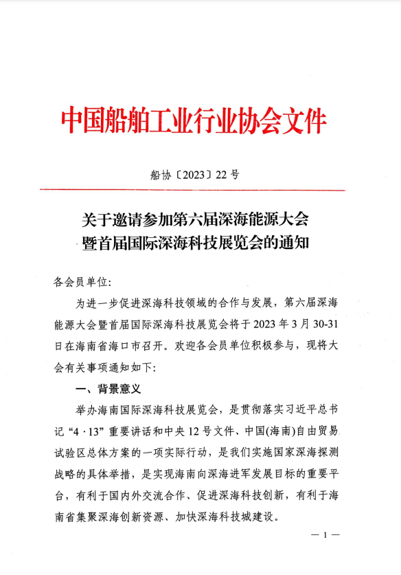 文件:邀请参加第六届深海能源大会暨首届国际深海科技展览会的通知