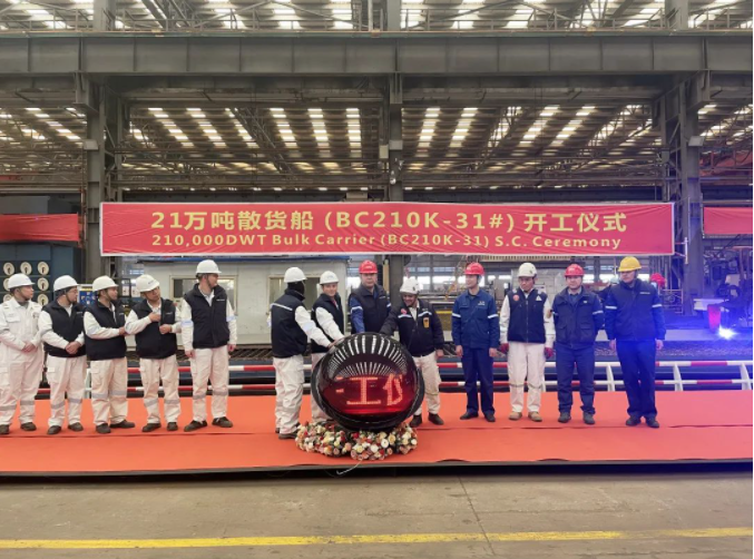 此次开工船舶系“氨Ready” 项目系列船的首制船,是CMB与北海造船再度携手深化合作的见证,标志着北海造船继21万吨散货船“LNG船型”后向新能源实船建造又迈进了坚实一步。该型船与常规散货船最大的不同是通过设计预留“氨燃料”新能源系统,在船体型线、总体布置、船体结构、设备配置等方面进行了系列优化升级,是具有绿色、节能、智能、安全、零排放等特色的新一代船型,也是公司面向国际航运市场倾心打造的“北海方案”。