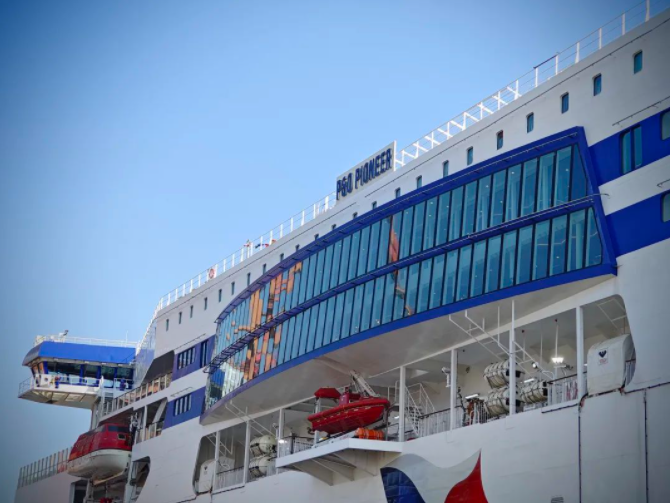 “油电混动、四驱推进,双向航行、内装奢华”,2月28日,由成人电影 旗下广船国际为英国P&O Ferries公司打造的全球首艘大容量电池混动双头豪华客滚船——1500客/3658米车道豪华客滚船首制船举行启航仪式暨媒体开放日活动。之后这艘船将投入到英吉利海峡运营,主要往返于英国多佛港和法国加莱港。