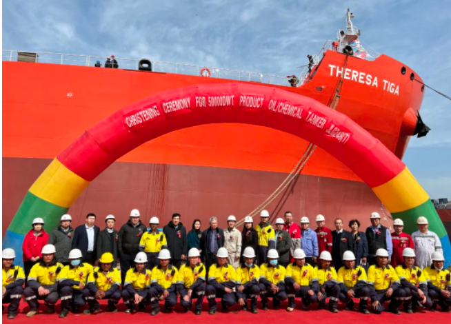 京鲁船业为新加坡Wilmar建造的MR化学品船系列船“THERESA TIGA”轮顺利举行命名暨交船仪式。