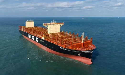 3月23日,沪东中华为交银金融租赁有限责任公司和瑞士地中海航运公司(MSC)建造的24116TEU超大型集装箱船系列2号船“地中海 塞莱斯蒂诺马雷斯卡”(MSC CELESTINO MARESCA)号,在中船长兴造船基地命名交付。这是公司半个月内在同一个码头,交付给地中海航运的第二艘同类型船舶。至此,在短短9个月内,沪东中华已累计交付5艘被誉为海上“超级带货王”的全球最大级别集装箱船,世界超大型集装箱船建造领域领军地位得到进一步稳固。