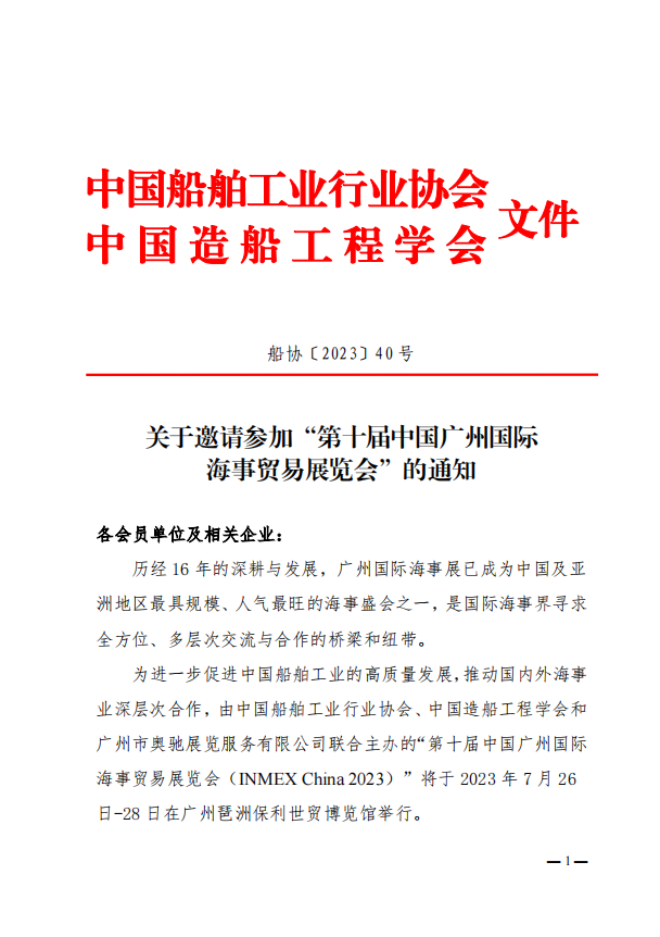 中船协(学)会邀请参加2023广州国际海事展参展通知