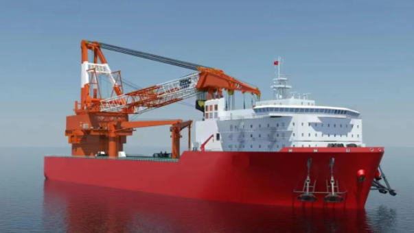 3600T全回转起重船总长182米,型宽 49米,型深15米,船体采用流线型设计,尾部线型便于安装全回转推进器,圆舭中部设置舭龙骨、纵骨架式、单连续甲板钢质焊接结构。船尾设置一台起重能力3600t×40m(固定尾吊)/3000t×45m(全回转)重型起重机,可进行海上起重作业。该船适用于无限航区航行,以海上风电打桩及安装为主,兼顾海洋结构物的吊运安装。