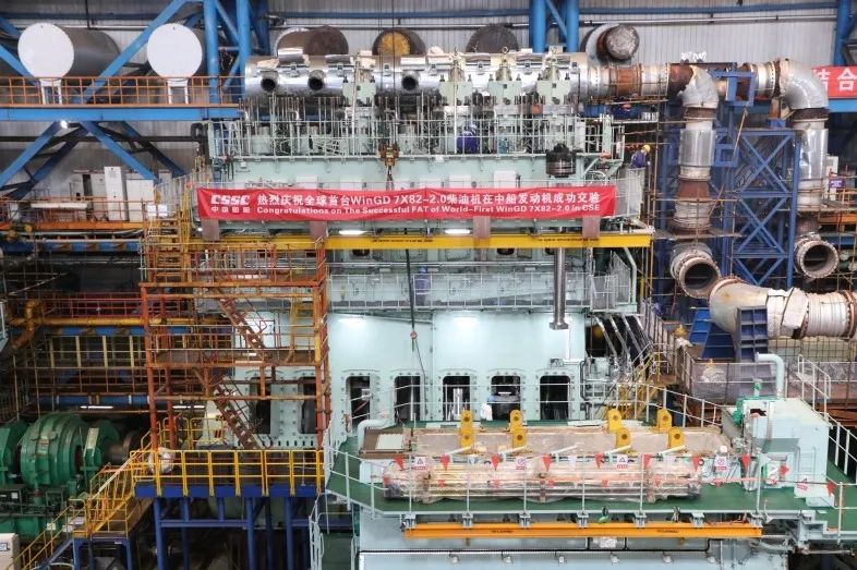 5月15日,世界首台7X82-2.0-HPSCR型主机在中国船舶中船发动机成功交验,该主机最大功率为38500kw,重924吨,预计将安装在青岛北海造船为达飞轮船建造的5500TEU集装箱船上。