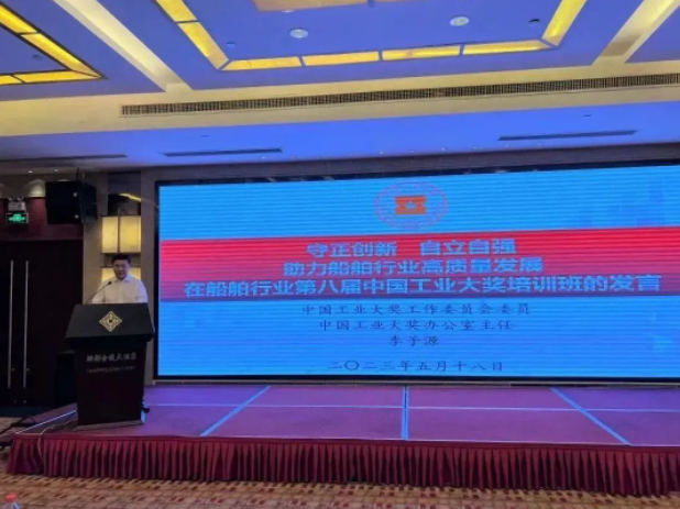 中国工业大奖工作委员会委员、中国工业大奖办公室李子源主任为会议作了《守正创新 自立自强 助力船舶行业高质量发展》的讲座。他重点围绕中国工业大奖设立背景及奖项介绍、前七届中国工业大奖实施情况、中国工业大奖申报评审流程和历届船舶获奖企业和项目典型代表四个方面为参会的企业代表进行了专题培训,并集中解答了参会代表提出的问题。