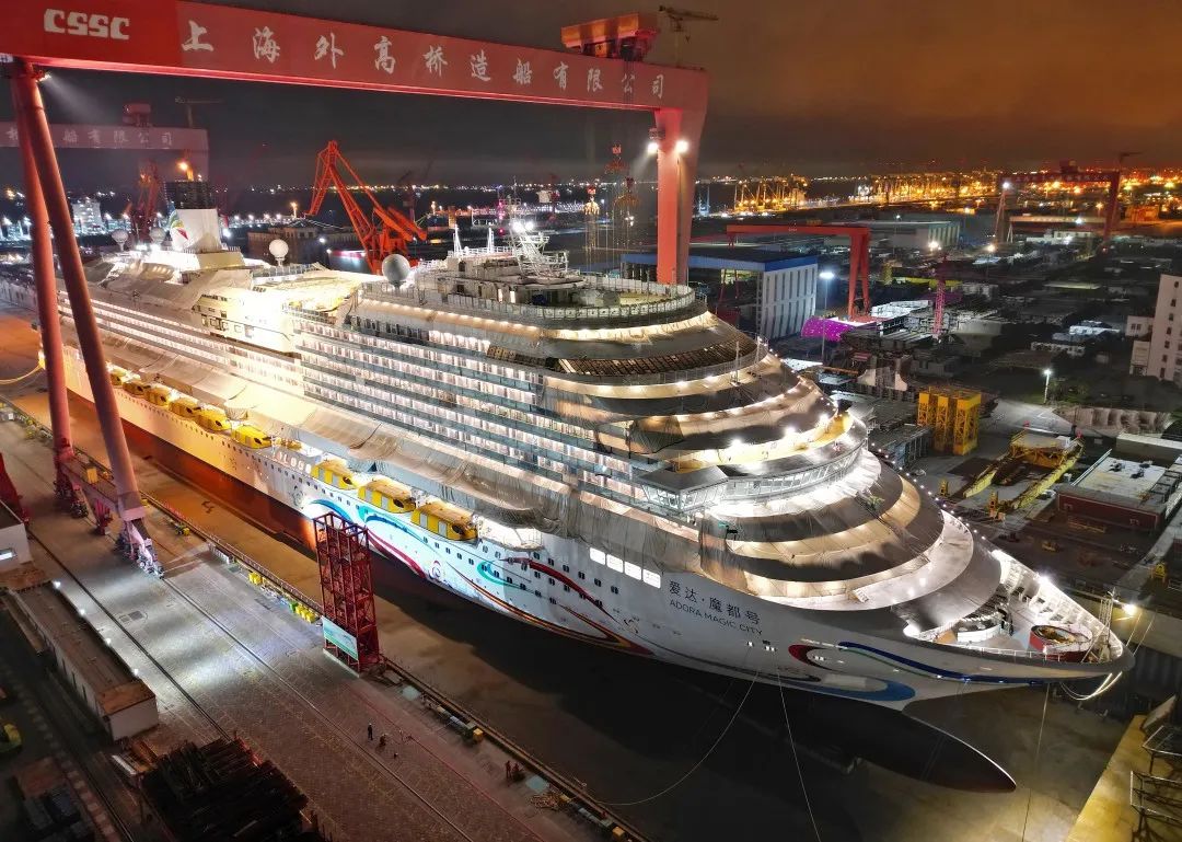 目前,“爱达·魔都号”总体进度为94.62%,建造进度为92.15%。根据计划,该船将于今年7月和8月进行二次试航,全面验证动力和推进系统、消防、火警、救生、通信导航、振动噪音、安全返港等涉及到邮轮安全的各项功能,完成房舱提交和公共区域的内装工程提交;并将于今年年底举行命名交付仪式。
