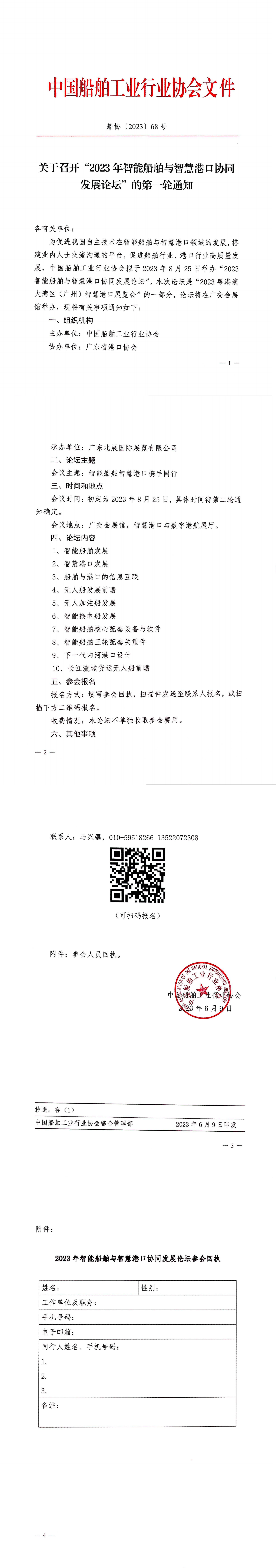 关于召开“2023年智能船舶与智慧港口协同发展论坛”的第一轮通知