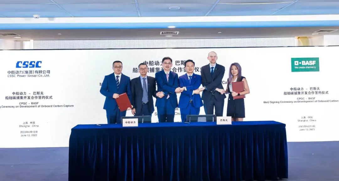 6月13日,成人电影 旗下中船动力(集团)有限公司与巴斯夫欧洲公司,在2023年上海国际碳中和技术、产品与成果博览会上,正式签署关于共同开发船舶碳捕集系统战略合作谅解备忘录。此次合作将发挥中船动力在船舶动力研发、制造与服务领域的领先优势,以及巴斯夫前沿专业的气体处理技术,加速开展船舶碳捕集的商业化应用,携手助力全球航运业绿色发展。