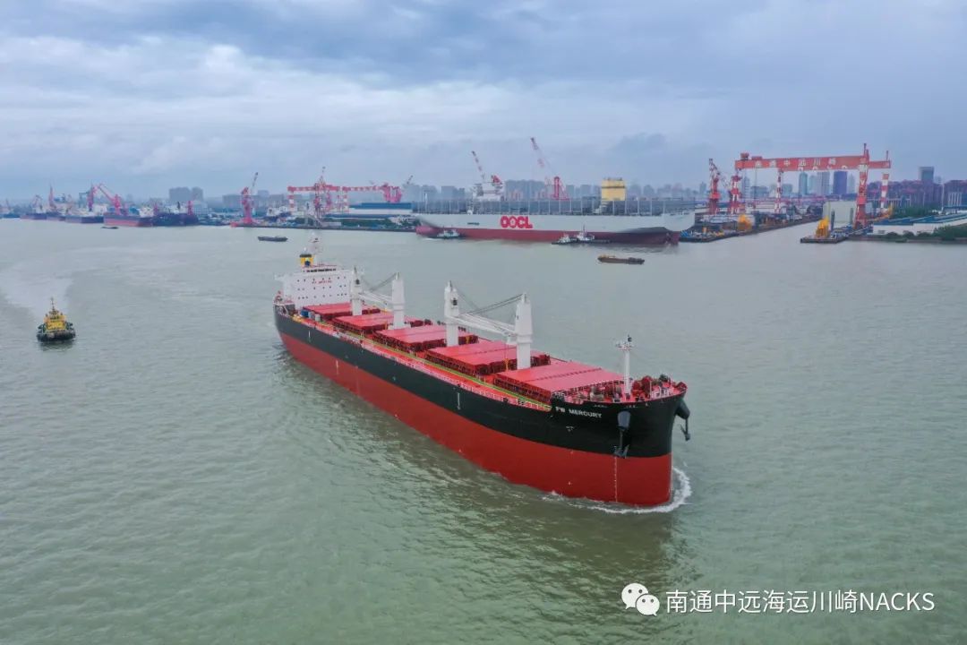 6.4万吨超灵便型散货船是南通中远海运川崎贯彻绿色低碳设计理念,自主研发的新船型,经市场反复检验,油耗低、安全智能、续航能力强等极具优势的性能特点获得多方认可,再次赢得良好的市场口碑。这艘名为“FW MERCURY”轮是第10艘“NACKS”6.4万吨散货船,恰逢华夏金融租赁公司成立十周年,寓意着双方合作实心实意、十全十美。
