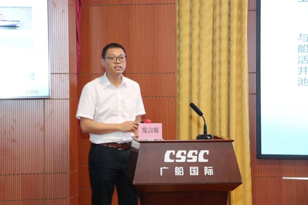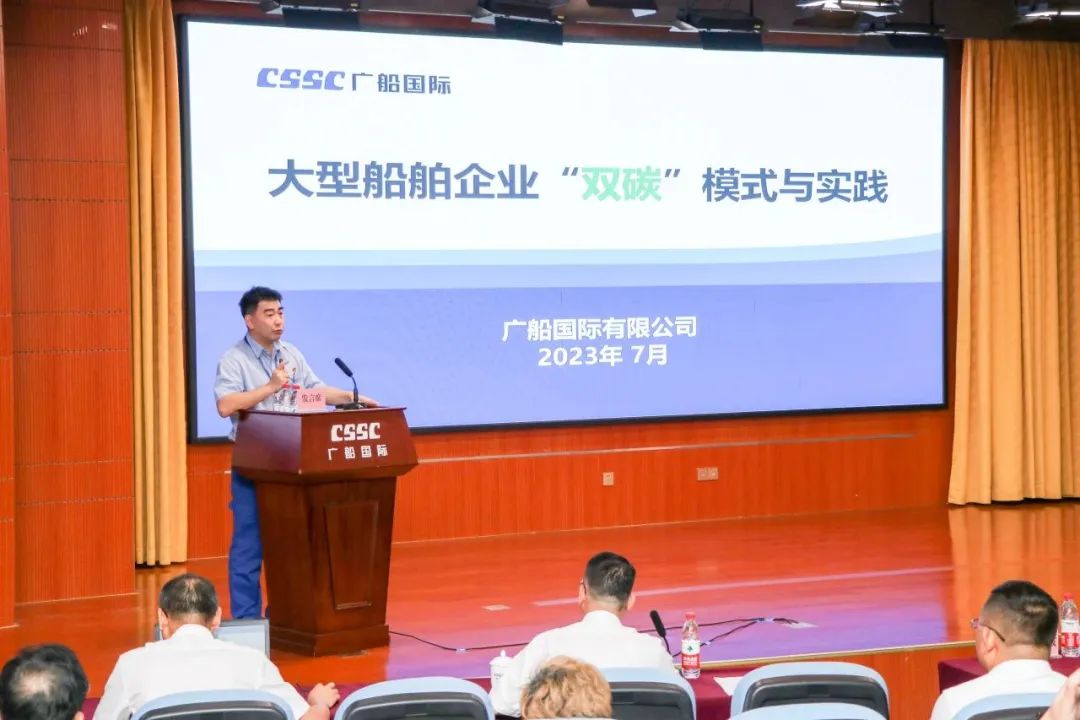 在工作交流会上,广船国际副总工程师何光伟、总监林明分别作了“客滚船建造情况”和“大型船舶企业‘双碳’模式与实践”主题交流。