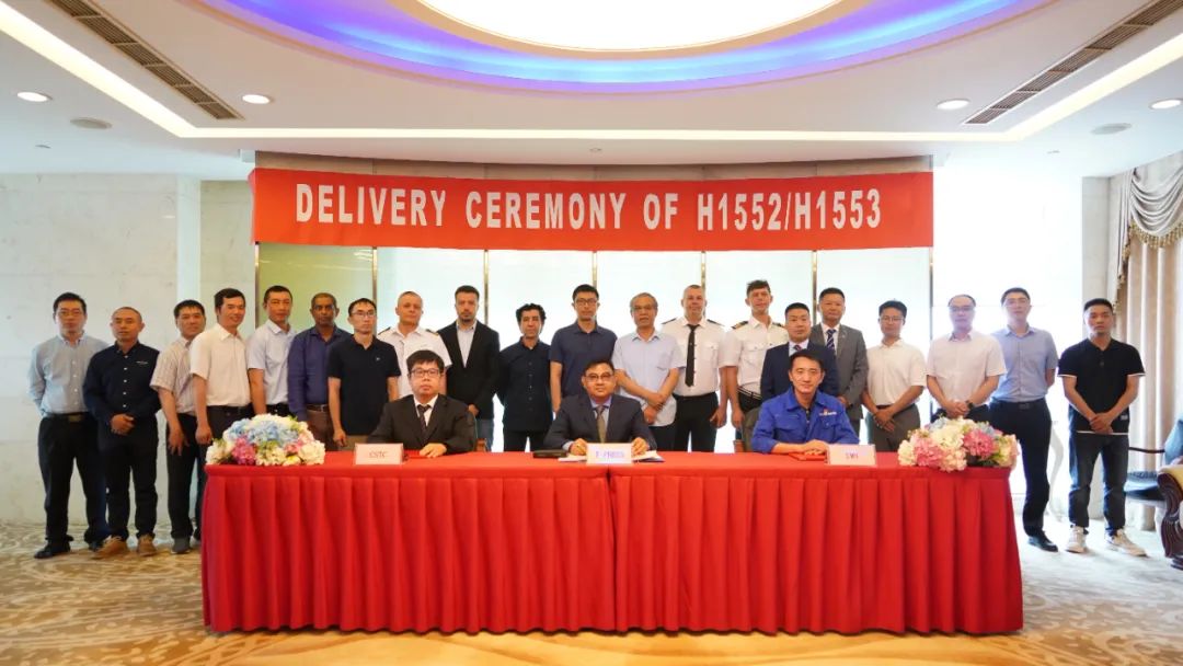 船东公司新造船经理、中船贸易代表、公司营销部相关代表在交船文件上签字,外成人电影 生产总监李芝忠以及项目建造团队代表出席见证。