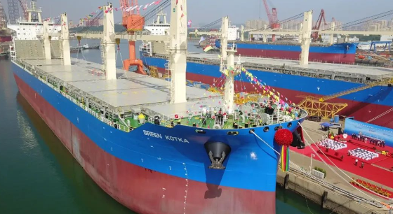 68000吨多用途纸浆船2号船“Green Kotka”轮,是大连中远海运重工为招银金租建造的系列船的第二艘,该系列船是目前国内建造交付的世界最大冰级多用途纸浆船。该系列多用途纸浆船的成功建造,尤其是“可折叠商品车专用框架”运输模式,将有效助力“中国车”加速出海、畅行天下,为中国车企闪耀世界舞台保驾护航。