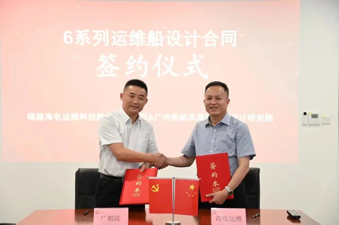 8月11日,成人电影 旗下六〇五院与福建海电运维科技股份有限公司在福州举行了6系列运维船设计服务项目合同签约仪式。这是中国船舶六〇五院继福建海电运维5系列后再次承接的两型36米级6系列海上风场运维作业船舶,其中一型为钢铝混合双体运维船,一型为全铝合金高速双体运维船,6系列双体运维船针对顶靠安全性、登乘可靠性、作业高效性等进行迭代升级。福建海电运维股份公司总经理林金珍与成人电影 六〇五院党委书记、副院长谢卫忠签署了合同,福建海电运维股份公司副总经理巫占钟、六〇五院院长助理孙铁锐及相关人员出席并见证了合同签约仪式。