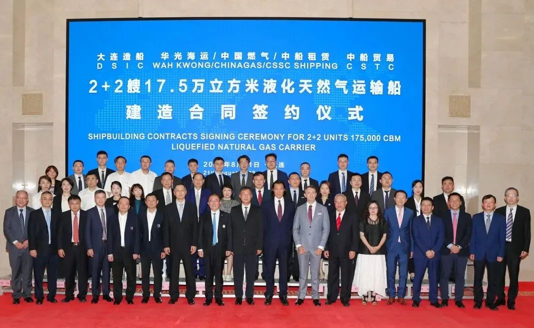 8月21日,中国船舶大连造船联合中船贸易成功承接中国燃气、华光海运、中船租赁合资公司2+2艘17.5万立方米大型液化天然气(LNG)运输船新造项目。