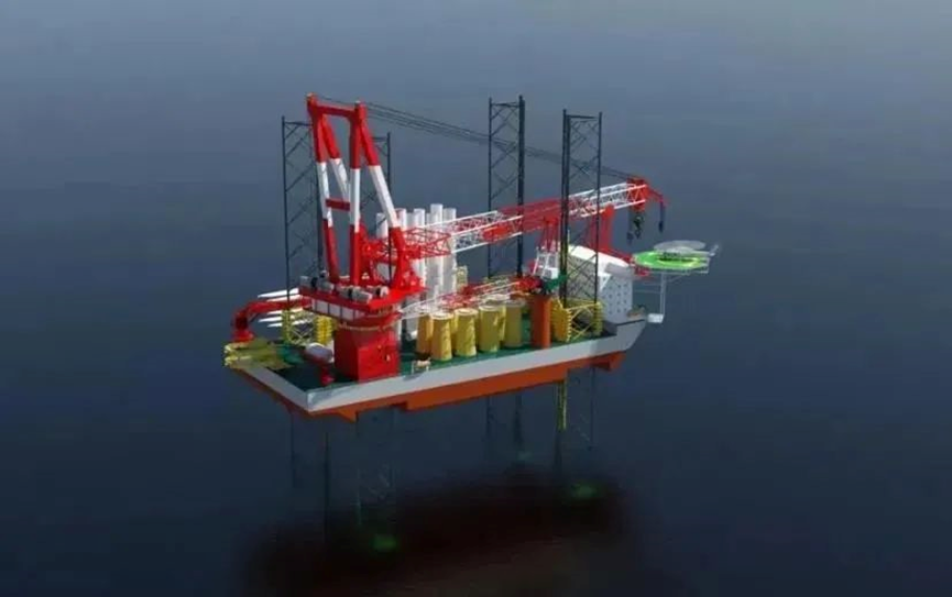 该平台依据无限航区标准进行设计,综合作业能力强。主要用于海上风电安装,具备起重、运输存储、深水20MW机组及基础的施工、DP2级动力定位和自航等功能。其最大作业水深70米,设计航速可达8节。