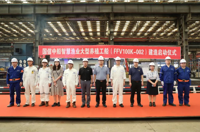北海造船举行国信中船智慧渔业大型养殖工船002号船建造启动仪式