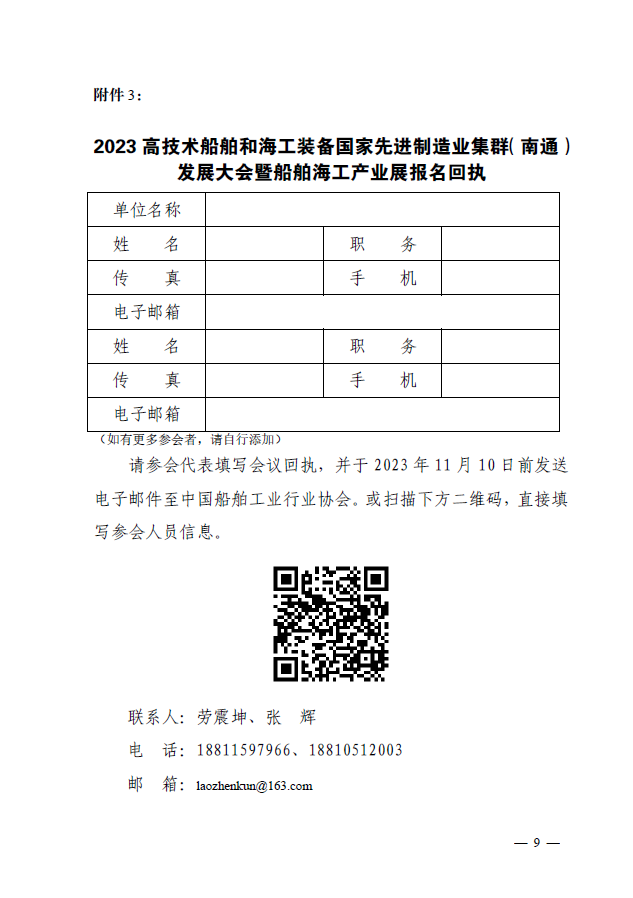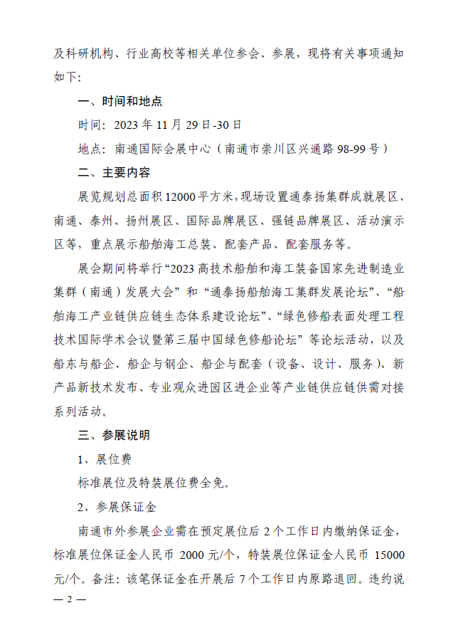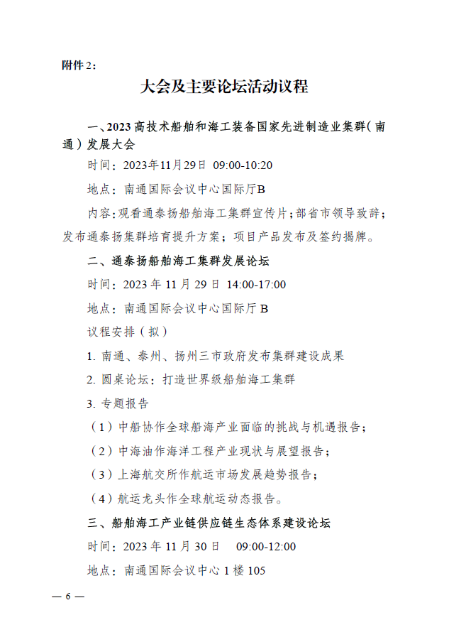 附件:关于邀请参加“2023 高技术船舶和海工装备国家先进制造业集群( 南通 ) 发展大会暨船舶海工产业展”的通知