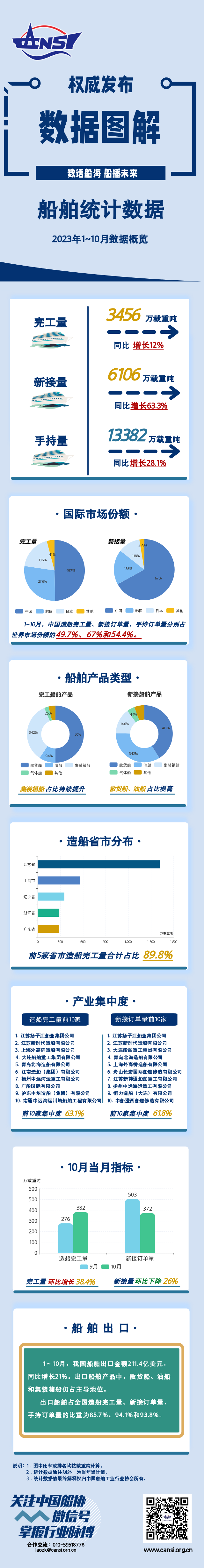 一图读懂丨2023年1~10月船舶统计数据