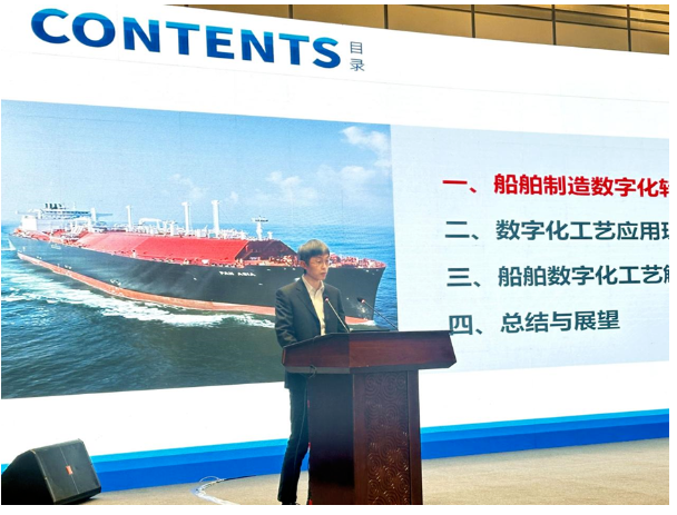 上海船舶工艺研究所数字工艺室副主任兼工艺数字化研发部部长韦乃琨先生做了《数字化工艺赋能船舶制造数字化转型》的报告,分析了当前船舶制造数字化转型发展要求和数字化工艺应用现状与发展必要性,分享了对船舶数字化工艺解决方案的思考。