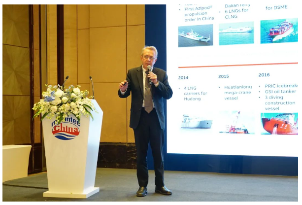 ABB船舶与港口亚洲、中东及非洲区总经理欧德纳,分享了新电动和混合动力技术在低排放及零排放船舶的应用前景。