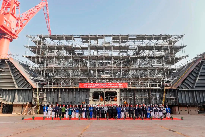 1月5日,沪东中华为中海油项目建造的第二艘17.4万方LNG船(H1881A)顺利入坞,公司副总经理迟本斌、翁红兵,LNG副总建造师张少鹰等领导出席仪式。