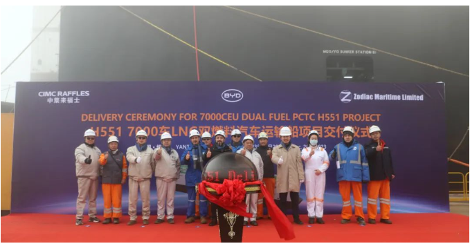中集来福士交付7000车位双燃料汽车运输船