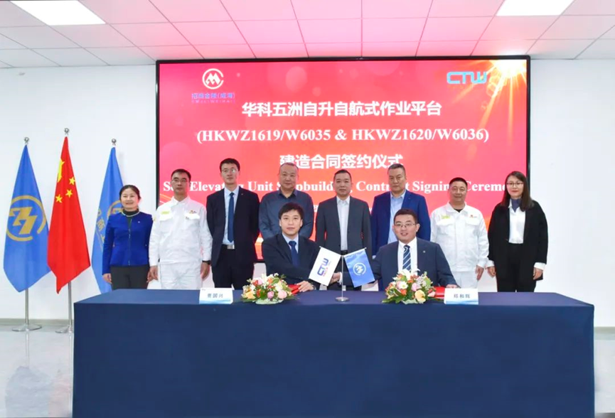 1月22日,招商工业威海金陵与华科五洲(天津)海洋工程有限公司(以下简称“华科五洲”)签署两座246FT/350FT自升自航式作业平台建造合同。华科五洲总经理贾国兴、公司总经理郑和辉分别代表双方签署合同文本。
